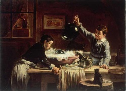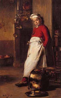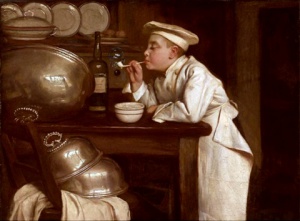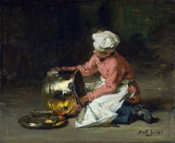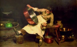 |[[Image:BAIL_Claude_Joseph_-_Marmiton_nettoyant_un_chaudron_316x193.jpg|250px|thumb|left|''Marmiton nettoyant un chaudron'' <br>Huile sur toile <br>Doullens, Musée Lombart]] | |||