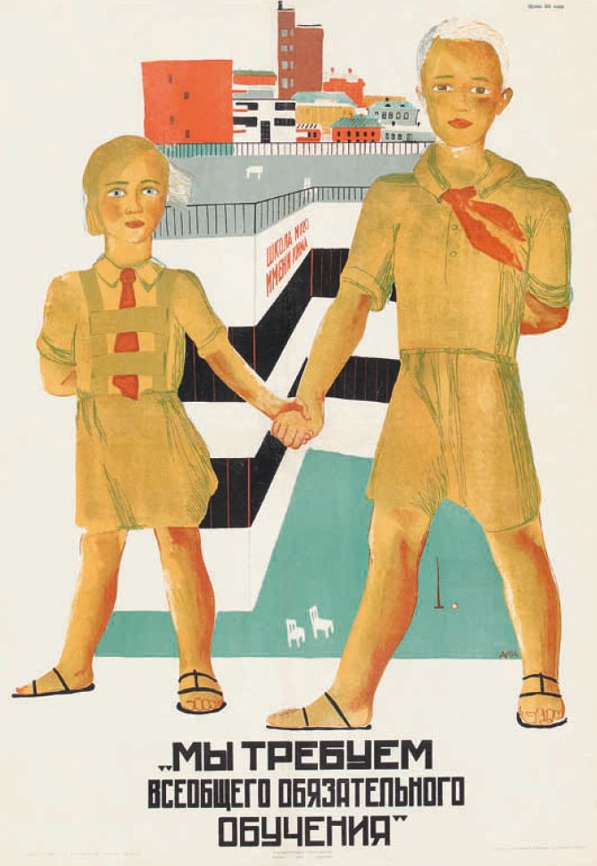 English : We require universal and compulsory education / Aleksandr Aleksandrovich Deyneka. – 1930. – Poster.
