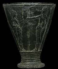 English : The chieftain’s cup. – Agia Triada, between 1600 and 1450 BCE. – Steatite vase. – (Iraklion, Greece : Archaeological Museum ; 341).