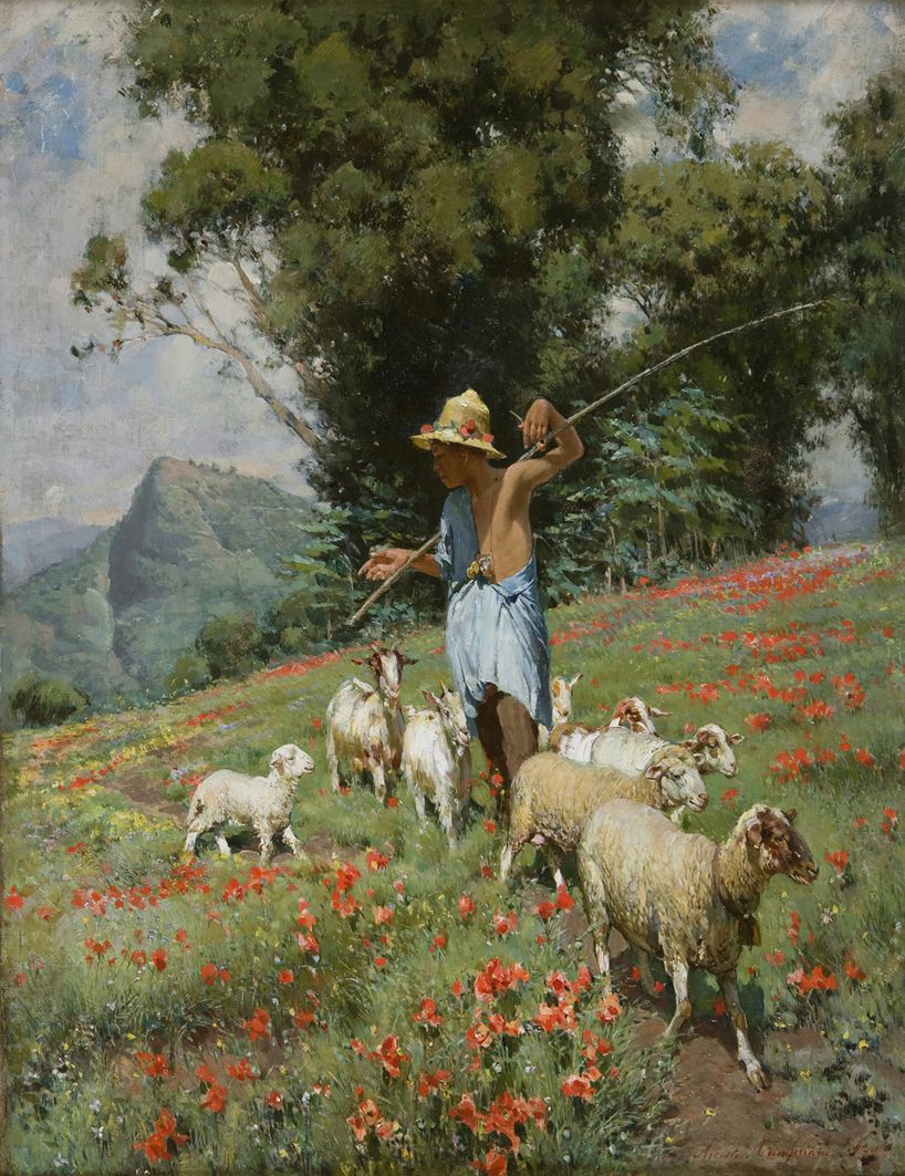 Italiano : Il piccolo pastore napoletano / Alceste Campriani. – 1900. – Olio su tela applicata su tavola ; 47 × 36 cm. – (Collezione privata).