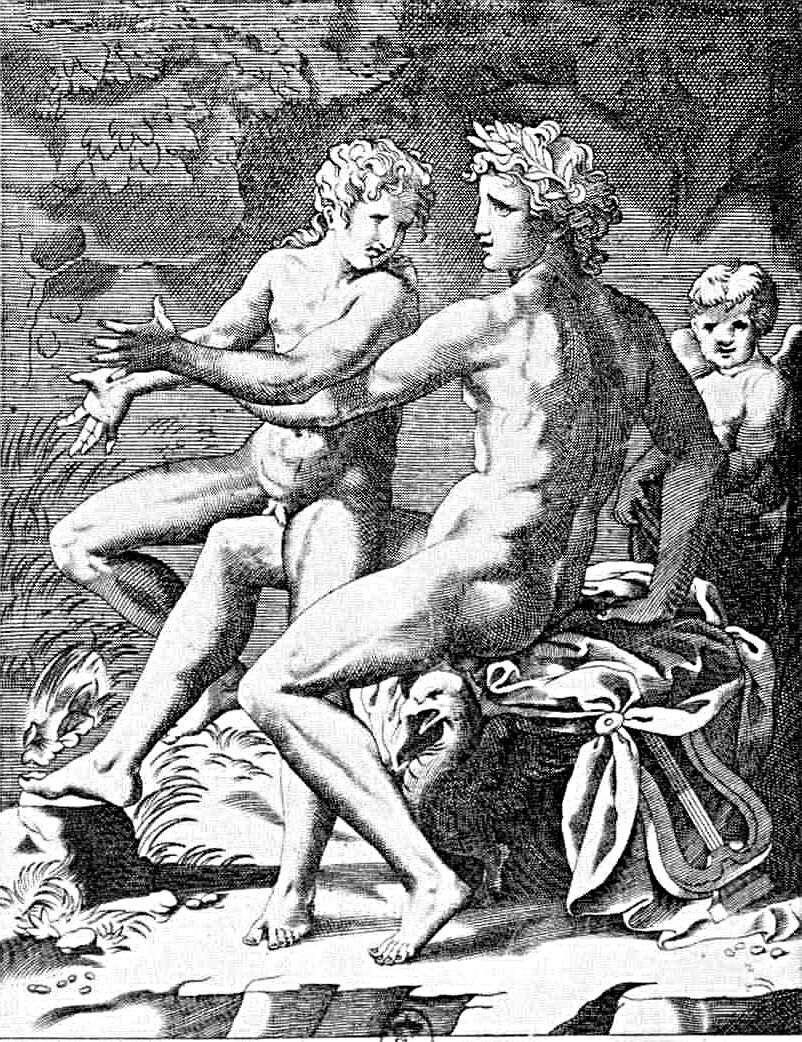 English : Apollo and Hyacinthus / Giovanni Jacopo Caraglio. – After 1527. – Engraving.