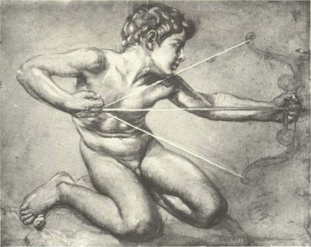 Giovinetto con arco / Vincenzo Gemito. – 1908-1909. – Disegno e biacca.