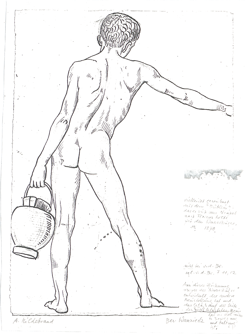Deutsch : Studie zu „Wasserträger” / Adolf von Hildebrand. – 1874-1878. – Zeichnung ; 39 × 29 cm. – (München, Deutschland : Architekturmuseum der Technischen Universität München).