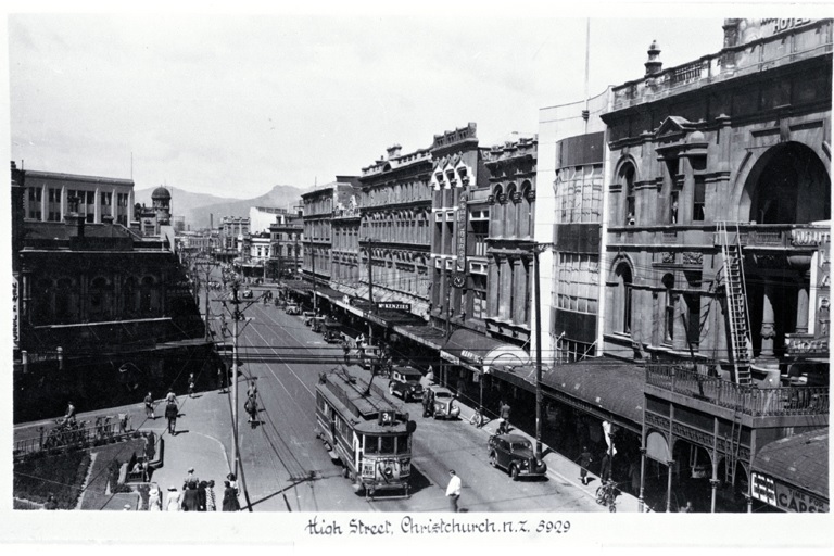 Image URL: https://upload.wikimedia.org/wikipedia/commons/9/97/High_Street%2C_Christchurch%2C_1940s.jpg
