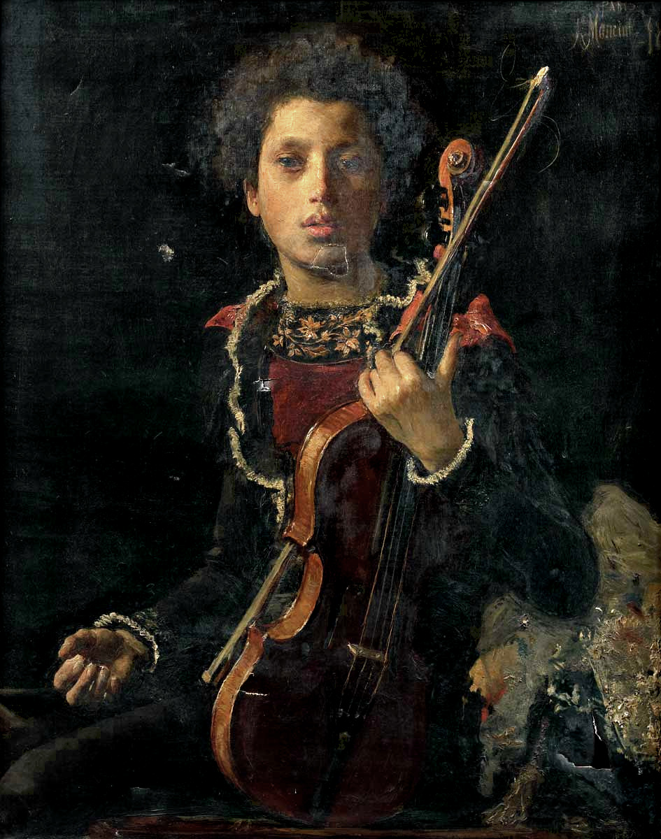 Italiano : Giovane violinista : Luigino Gianchetti / Antonio Mancini. – Parigi, 1878. – Olio su tela ; 93 × 74 cm. – (Collezione privata).
