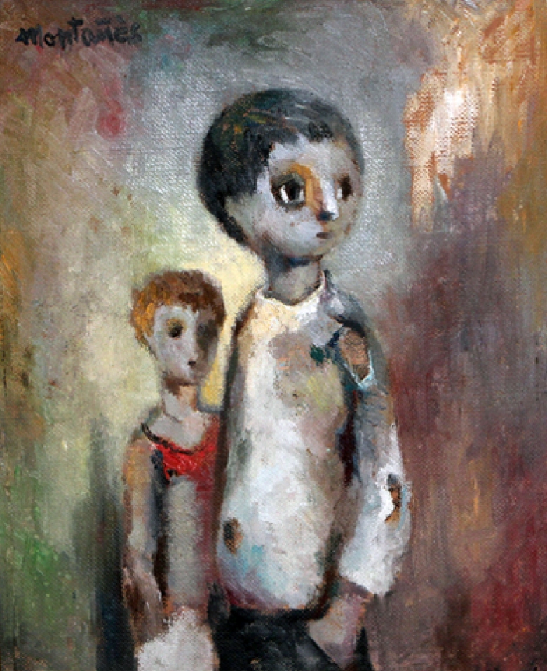 Español : Camaradas / José Montañés Navarro. – Óleo en lona ; 46 × 38 cm. – (Colección privada).
