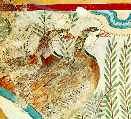 Description: Partridge Fresco (ca. 15th–14th Century BCE) from the "Caravanserai" at Knossos, Crete, Greece. Iraklion Archaeological Museum.