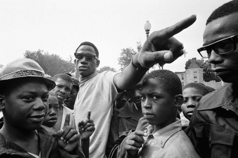 Description: The activist Rufus "Catfish" Mayfield (pointing) and members of Pride, Inc., August 7, 1967. Washington, D.C., United States.