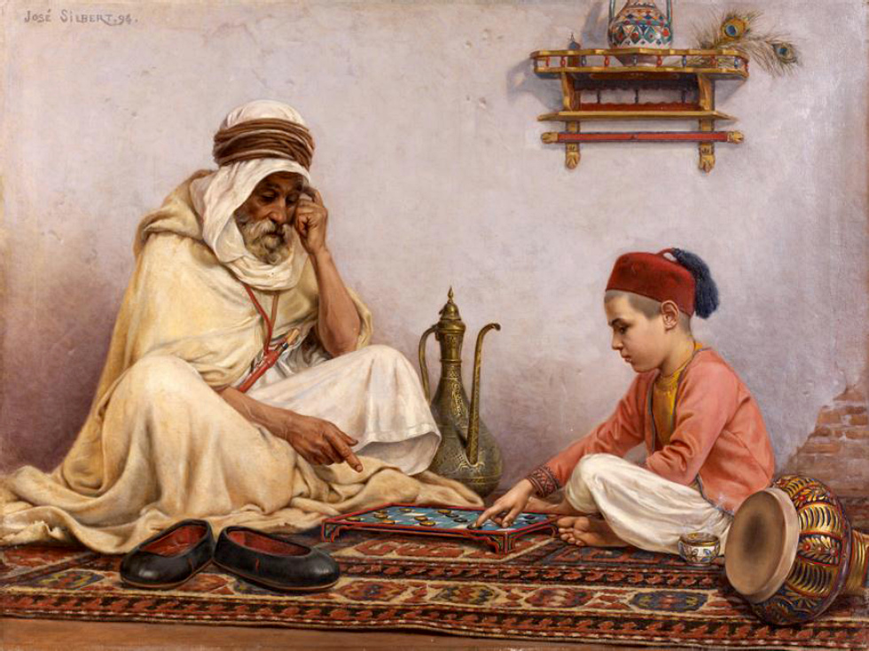 English : Playing draughts / José Silbert. – 1894. – Oil on canvas ; 75 × 100 cm. – (Private coll.).