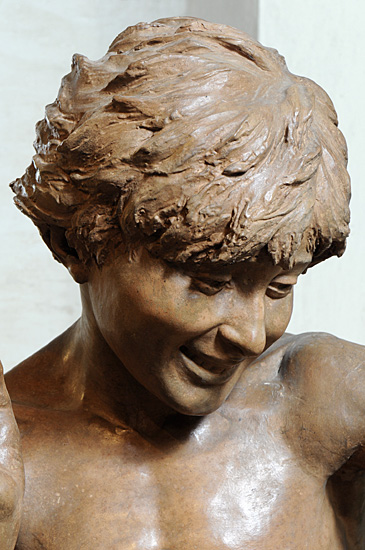 Français : L’enfant à l’escargot / attribué à Adolphe-Martial Thabard. – Détail. – Plâtre patiné ; H 110 × L 40 × P 75 cm.
