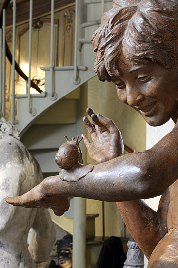 Français : L’enfant à l’escargot / attribué à Adolphe-Martial Thabard. – Détail. – Plâtre patiné ; H 110 × L 40 × P 75 cm.