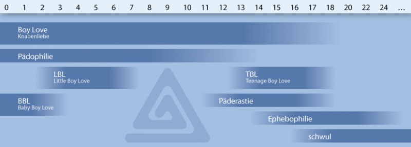 Veranschaulichung verbreiteter Begriffe für BL-Perv-Kategorien im Hinblick auf Altersspannen.