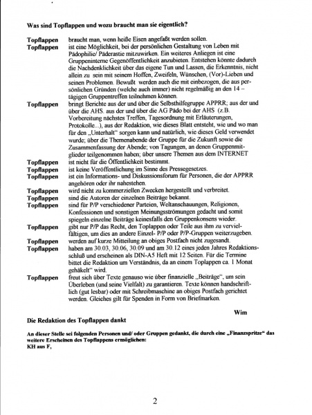 Seite 2 der 15. Ausgabe (Ende 2002) des Infoblatts "Topflappen" der APPRR