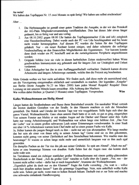 Seite 3 der 15. Ausgabe (Ende 2002) des Infoblatts "Topflappen" der APPRR.