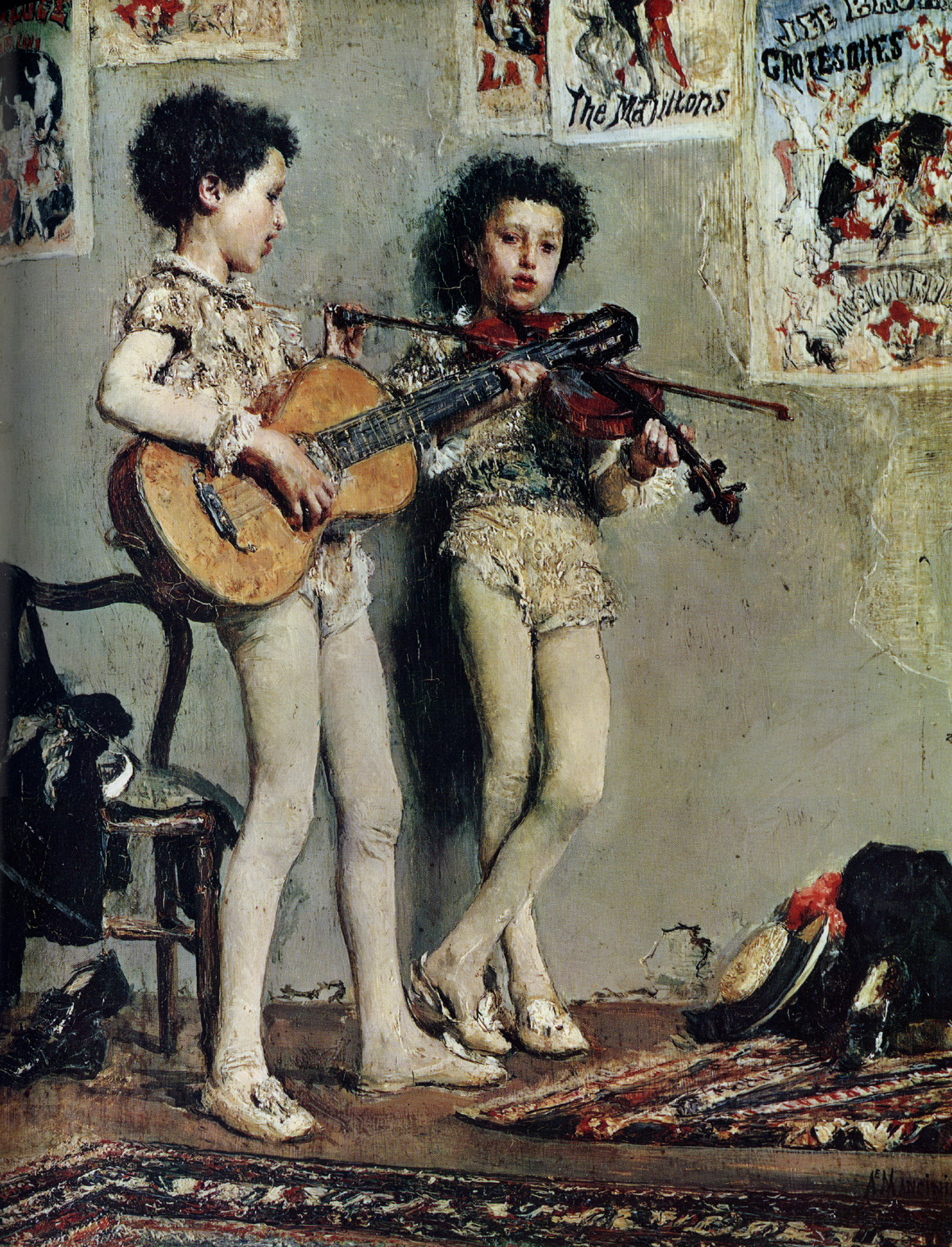 Italiano : I piccoli saltimbanchi suonatori / Antonio Mancini. – 1877.