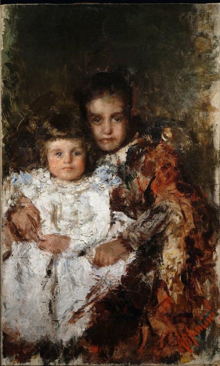 English : Two cousins / Antonio Mancini. – About 1902. – Oil on canvas ; 99 × 60 cm. – (Philadelphia, United States : Philadelphia Museum of Art ; 2004-108-11).