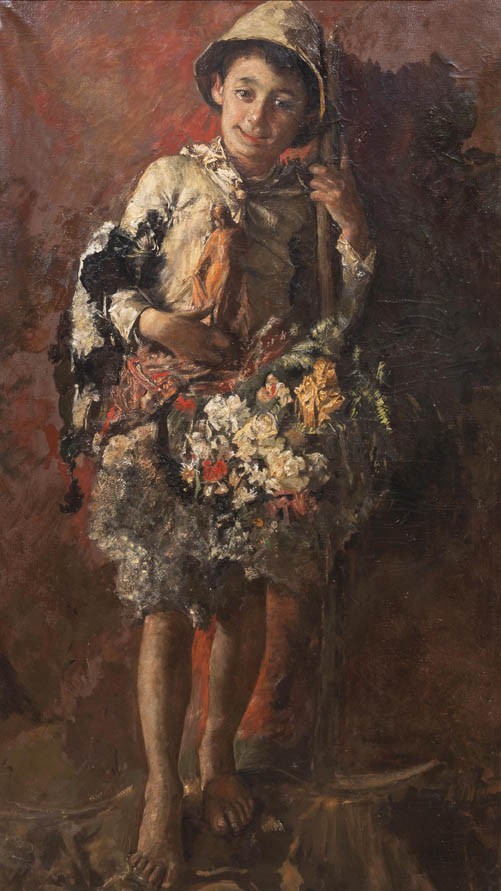 Français : Portrait de garçon / à la manière d’Antonio Mancini. – Huile sur toile ; 132 × 76 cm. – (Collection privée).