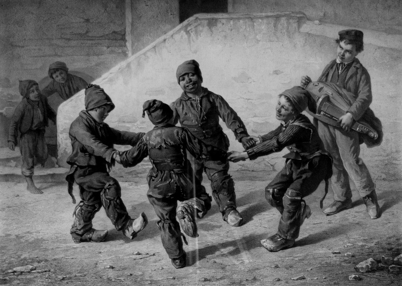 Edouard Alexandre Sain (Cluny 1830 - Paris 1910 ) Vielleur et petits ramoneurs savoyards dansant Estampe